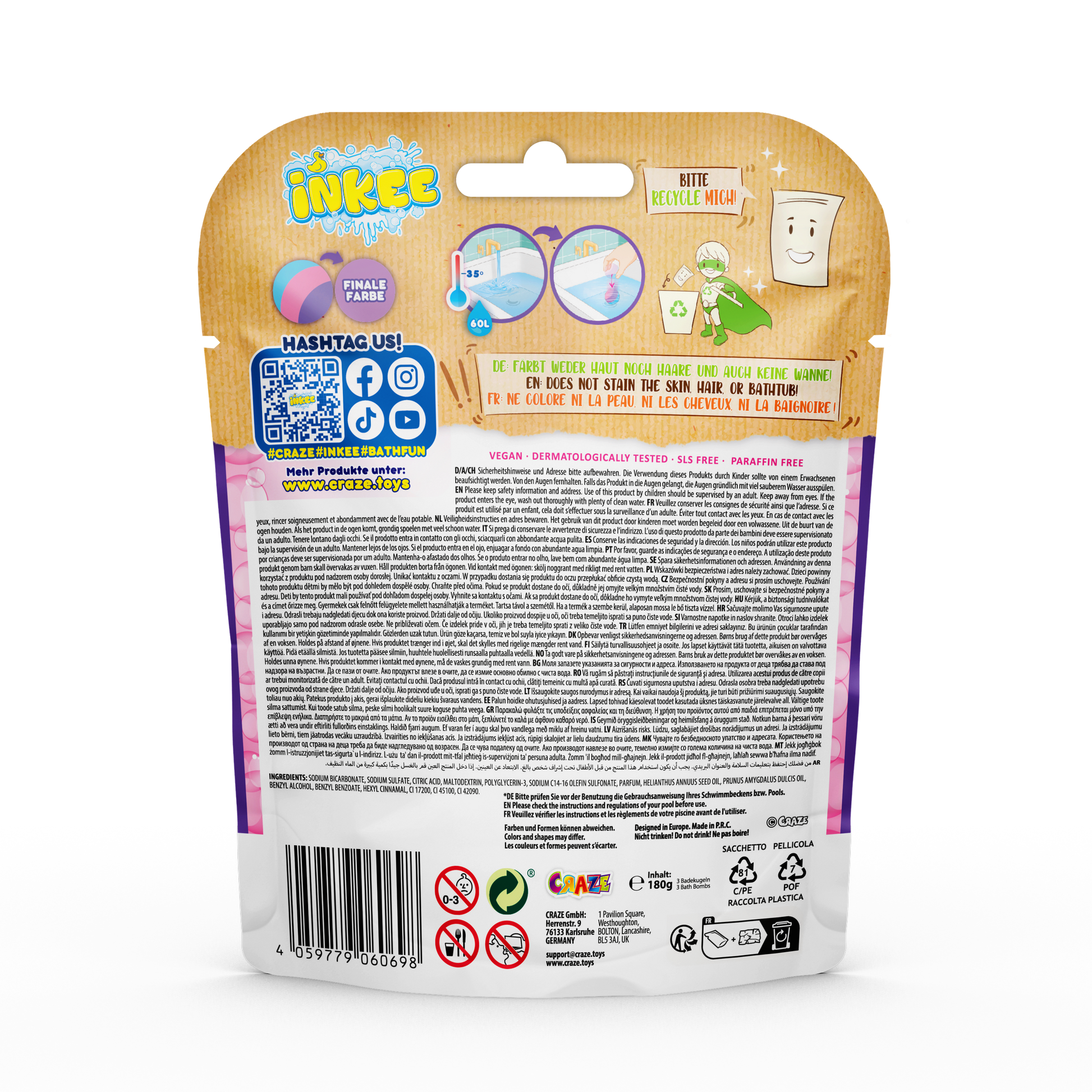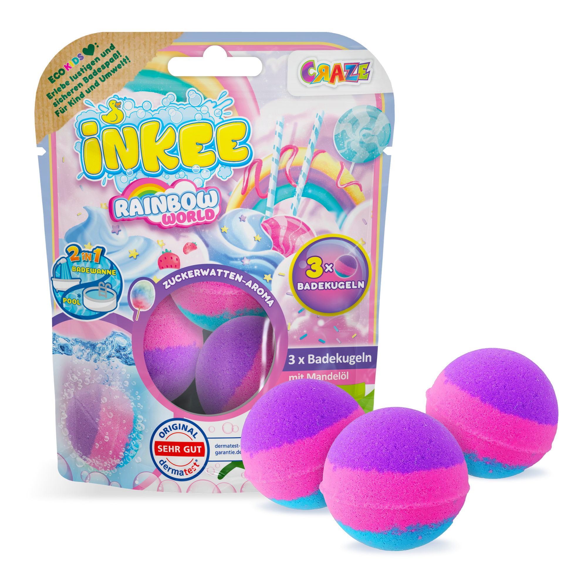 The CRAZE INKEE bath additive for children ensures real bathing fun and delightful scents for little water lovers in the bathtub or paddling pool. Whether as a souvenir, as a Christmas gift, to fill an Advent calendar, or as a bath toy for children who don't normally enjoy bathing – CRAZE INKEE bath additives are suitable for every occasion.