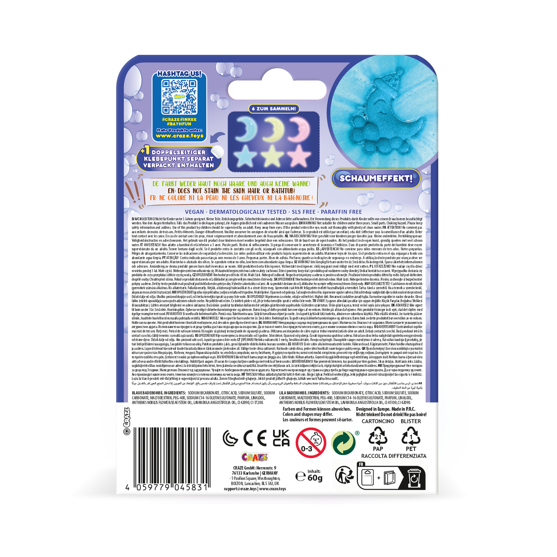 The CRAZE INKEE bath additive for children ensures real bathing fun and delightful scents for little water lovers in the bathtub or paddling pool. Whether as a souvenir, as a Christmas gift, to fill an Advent calendar, or as a bath toy for children who don't normally enjoy bathing – CRAZE INKEE bath additives are suitable for every occasion.