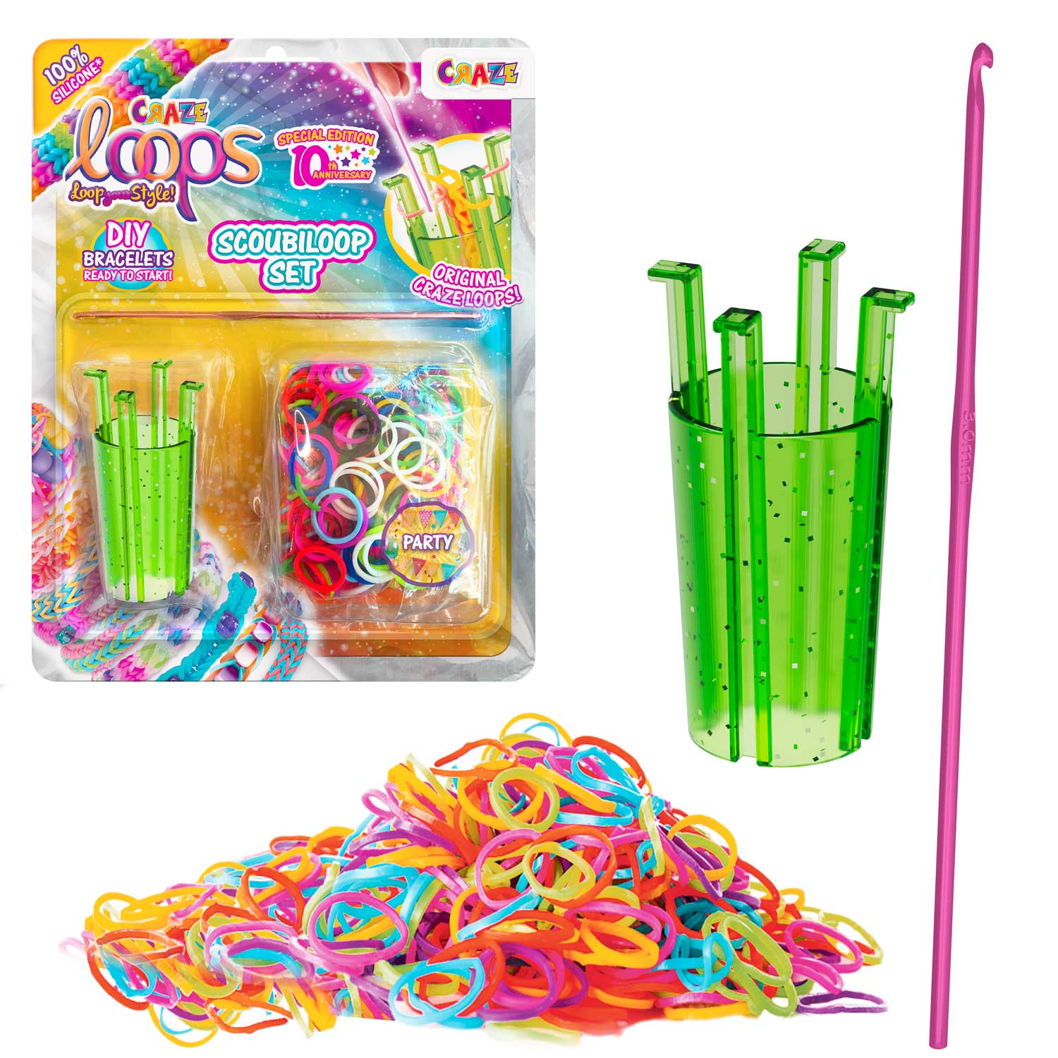 Die Armbänder sind besonders angenehm zu tragen, hautfreundlich, dehnbar und werden nicht porös. Damit die mit ganz viel Liebe und Hingabe geknüpften Loom-Bänder auf der Haut nicht ziepen und die kreativen Kunstwerke schön elastisch bleiben, sind unsere CRAZE LOOPS nicht aus PVC, sondern aus 100% Silikon hergestellt.